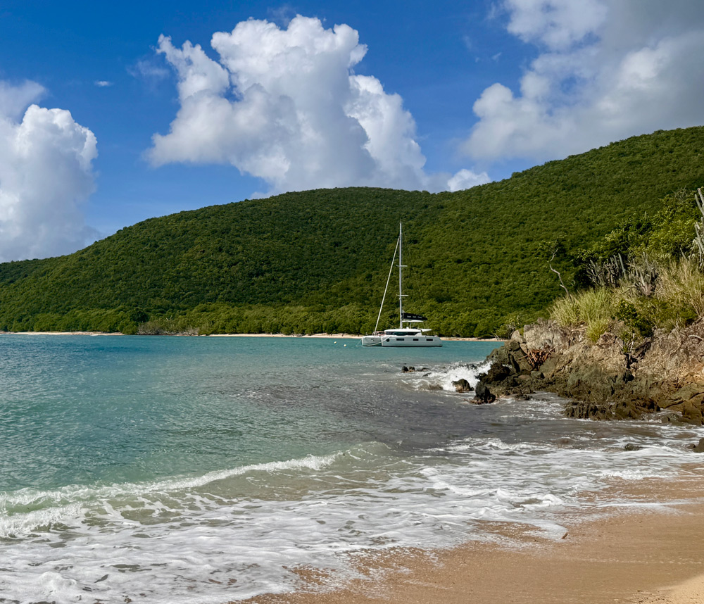 The leg from Reef Bay to Magens Bay was another 14 miles and once underway we were able to hoist our sails and enjoy a stretch in the cool trade winds. The weather had been spectacular the entire week, our only rain was at night when we closed the hatches and enjoyed the efficient air-conditioning system in the spacious boat.