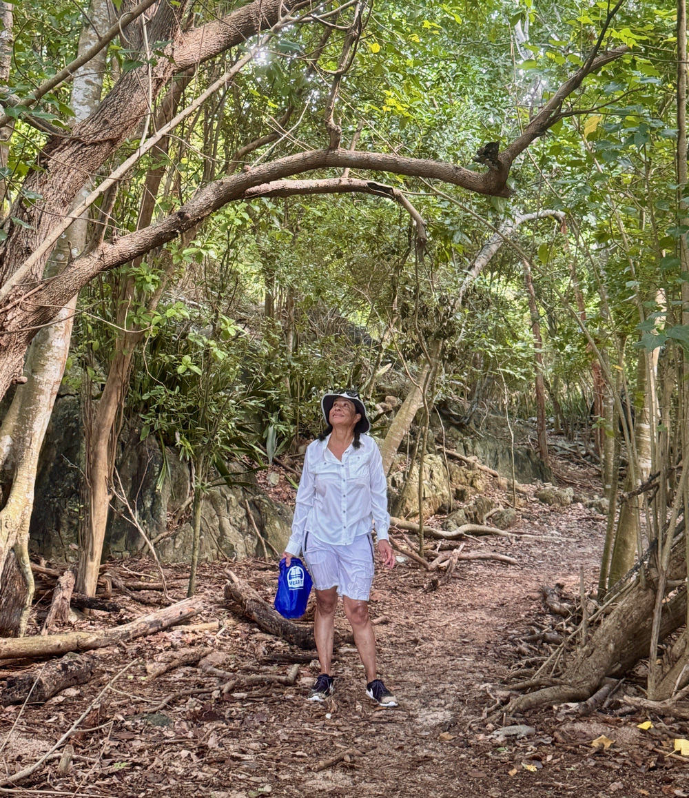 Fairchild’s Beach Bar stood at the northeast corner and was open for breakfast and lunch: perfect timing, as you don’t want to be ashore when the sun sets and insects come out. We stayed two nights here frolicking in the water and exploring ashore. The 13-mile-long mountainous island showcases the delightful mélange of heritage, languages, cultures and cuisine of the USVI. It’s the only place in the US where cars are driven in the left lane. The climate is perfection, with average winter temperature of 77 degrees and average summer temp of 82 degrees. And for the tropics it is relatively dry.